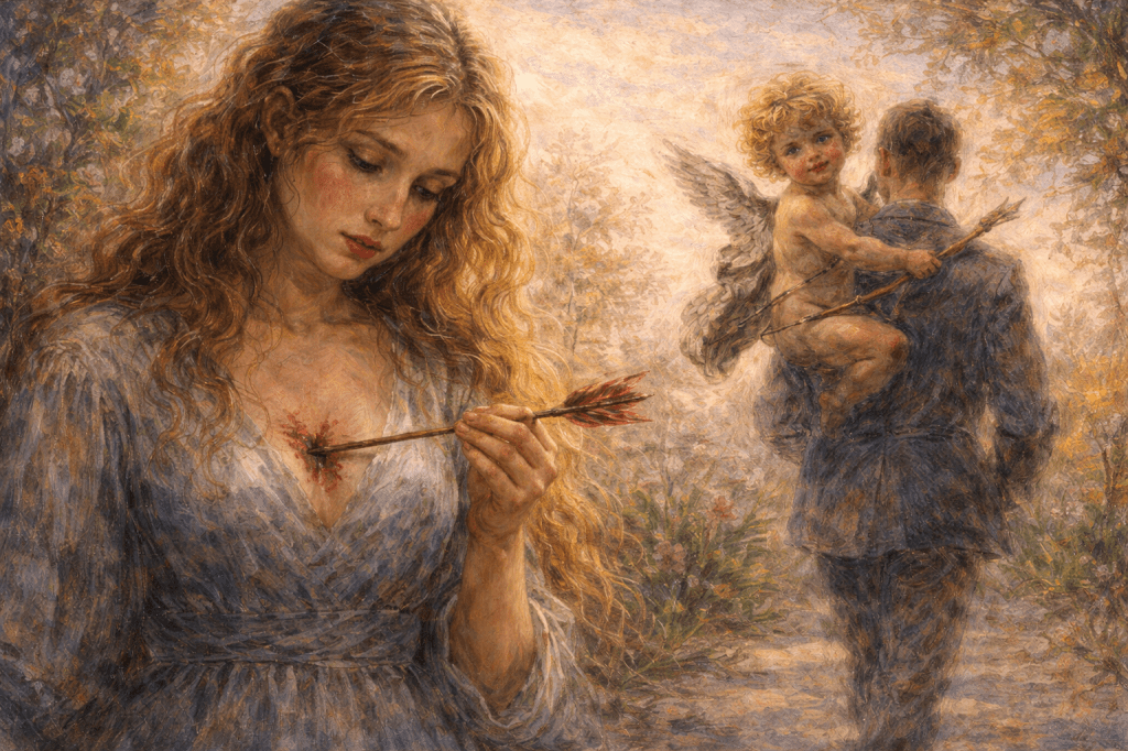 Yo no quería ser flechada, así que ese día me escapé. Corrí y corrí sin mirar atrás. Pero Cupido se quedó con vos, como si fuera tu fiel mascota.
